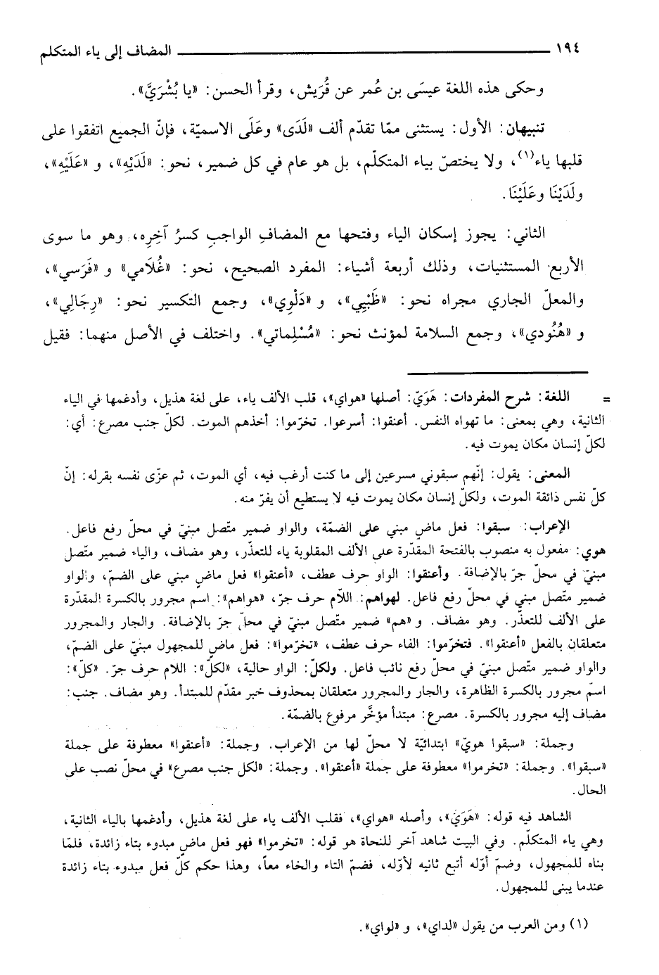 = اللغة: شرح المفردات: هوي: أصلها "هواي" قلب الألف ياء، على لغة هذيل، وأدغمها في الياء الثانية وهي بمعنى: ما تهواه النفس. أعنقوا: أسرعوا. تخرموا: أخذهم الموت. لكل جنب مصرع: أي: لكل إنسان مكان يموت فيه.