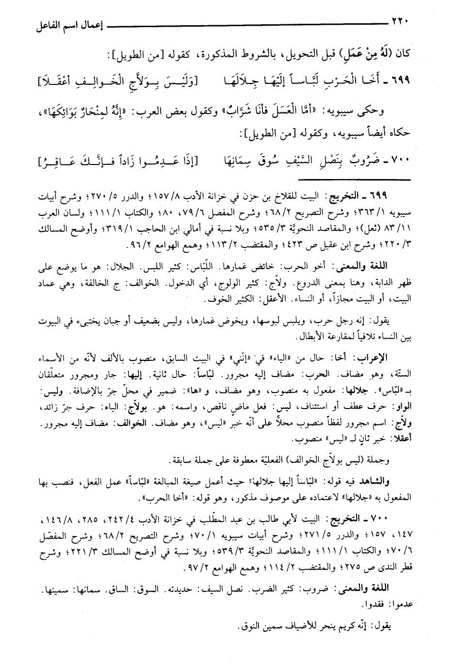 700- التخريج: البيت لأبي طالب بن عبد المطلب في خزانة الأدب 4/ 242، 258، 8/ 146، 147، 157؛ والدرر 5/ 271؛ وشرح أبيات سيبويه 1/ 70؛ وشرح التصريح 2/ 68؛ وشرح المفصل 6/ 70؛ والكتاب 1/ 111؛ والمقاصد النحوية 3/ 539؛ وبلا نسبة في أوضح المسالك 3/ 221؛ وشرح قطر الندى ص275؛ والمقتضب 2/ 114؛ وهمع الهوامع 2/ 97.
