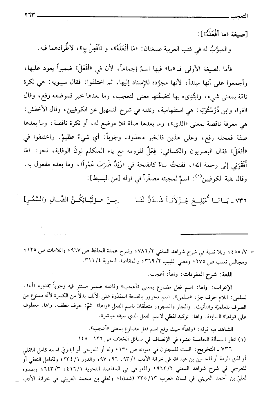 والمبوب له في كتب العربية صيغتان: "ما أَفْعَلَه"، و"أَفْعِل به" لاطرادهما فيه.