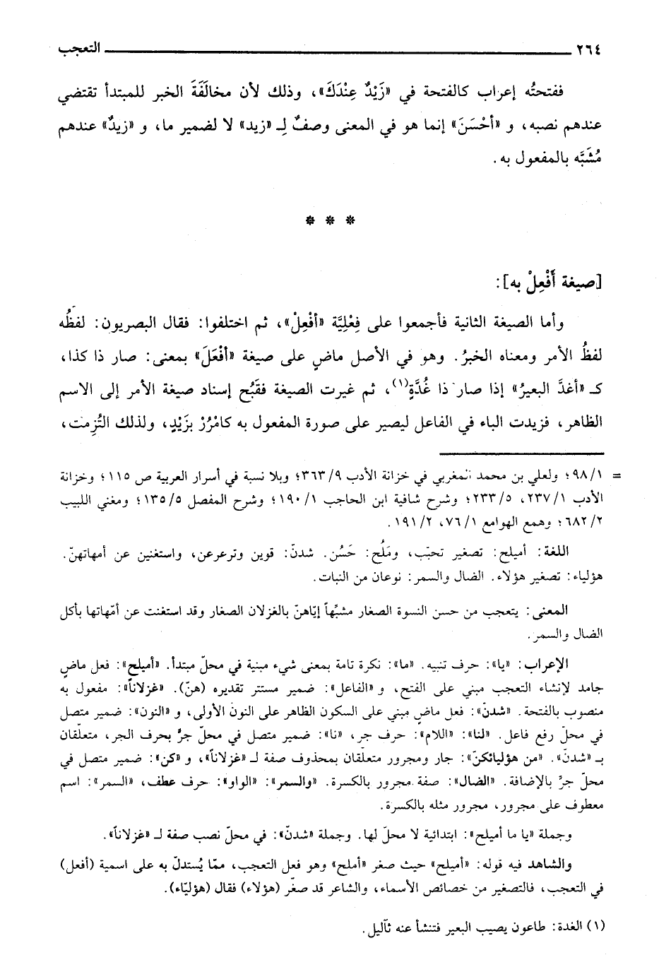 والشاهد فيه قوله: "أميلح" حيث صغر "أملح" وهو فعل التعجب، مما يستدل على اسمية "أفعل" في التعجب، فالتصغير من خصائص الأسماء، والشاعر قد صغر "هؤلاء" فقال "هؤلياء".