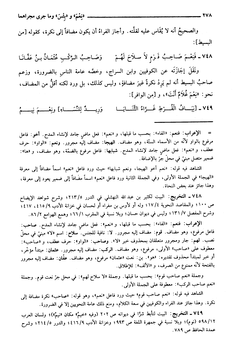 748- التخريج: البيت لكثير بن عبد الله النهشلي في الدرر 5/ 213؛ وشرح شواهد الإيضاح ص100؛ والمقاصد النحوية 4/ 17؛ وله أو لأوس بن مغراء أو لحسان في خزانة الأدب 9/ 415، 417؛ وشرح المفصل 7/ 131؛ وليس في ديوان حسان؛ وبلا نسبة في المقرب 1/ 66؛ وهمع الهوامع 2/ 86.