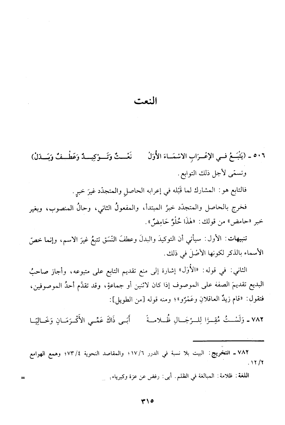 "يتبع في الإعراب الأسماء الأُوَل ... نعت وتوكيد وعطف وبدل"