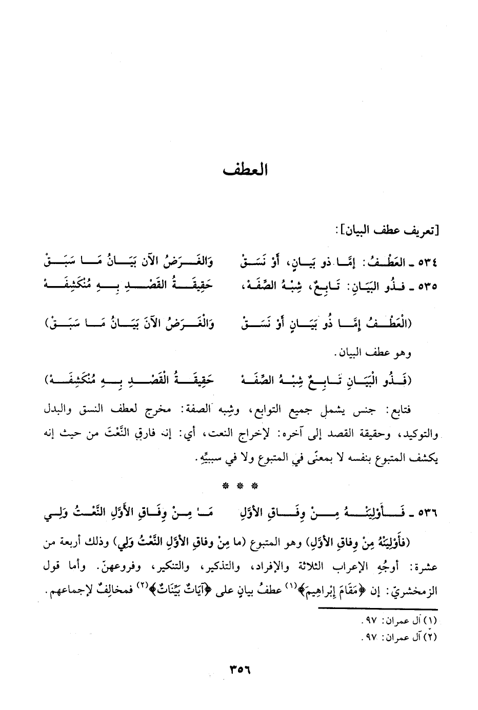 "العطف إما ذو بيان أو نسق ... والغرض الآن بيان ما سبق"