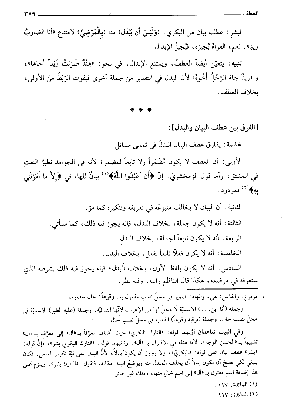 خاتمة: يفارق عطف البيان البدل في ثماني مسائل: