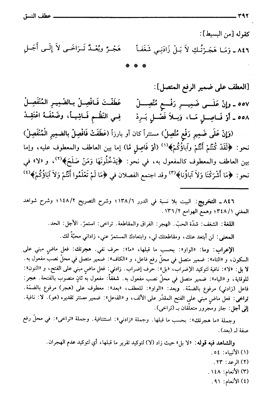 والشاهد فيه قوله: "لا بل" حيث زاد "لا" لتوكيد تقرير ما قبلها، أي لتوكيد عدم الهجران.