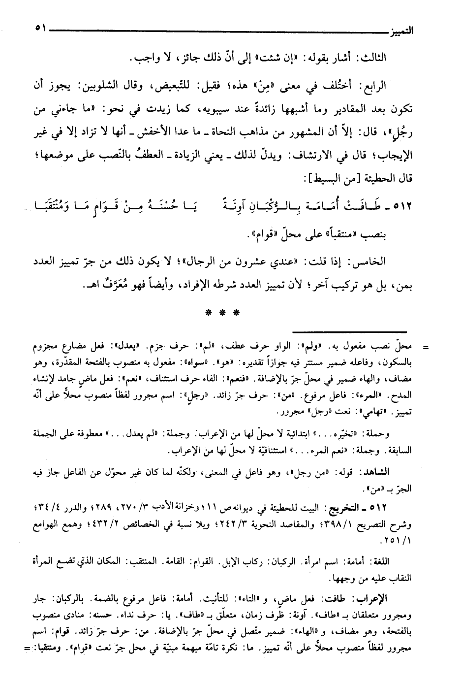 512- التخريج: البيت للحطيئة في ديوانه ص11؛ وخزانة الأدب 3/ 270، 289؛ والدرر 4/ 34؛ وشرح التصريح 1/ 398؛ والمقاصد النحوية 3/ 242؛ وبلا نسبة في الخصائص 2/ 432؛ وهمع الهوامع 1/ 251.