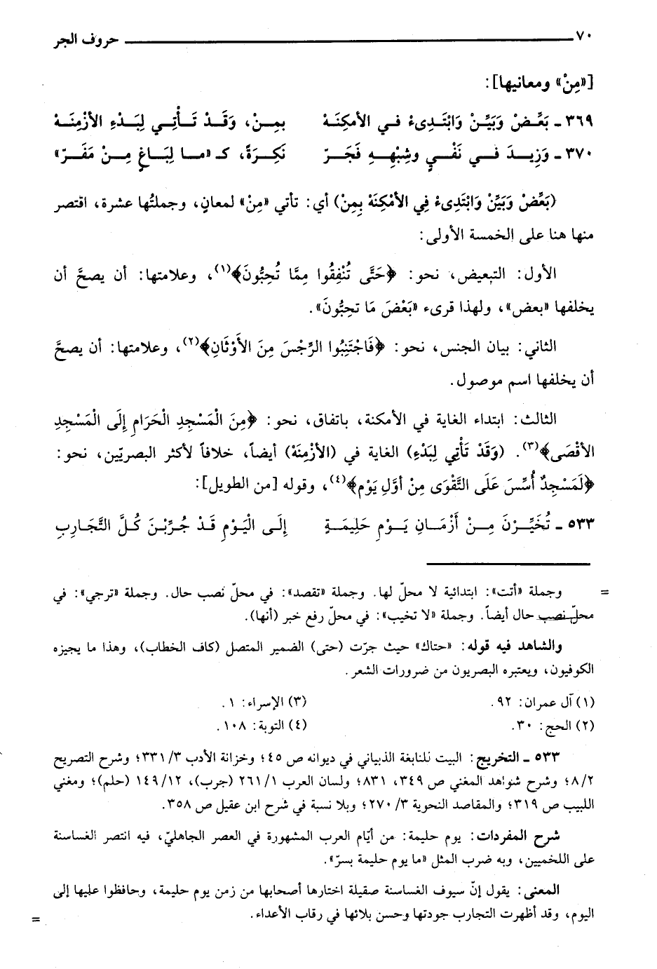 533- التخريجٍ: البيت للنابغة الذبياني في ديوانه ص45؛ وخزانة الأدب 3/ 331؛ وشرح التصريح 2/ 8؛ وشرح شواهد المغني ص349، 831؛ ولسان العرب "1/ 261 "جرب"، 12/ 149 "حلم"؛ ومغني اللبيب ص319؛ والمقاصد النحوية 3/ 270؛ وبلا نسبة في شرح ابن عقيل ص358.