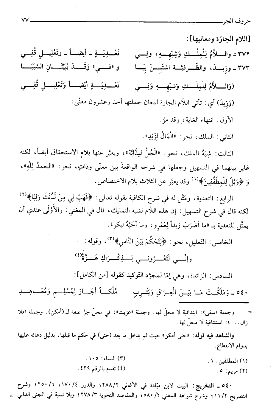 وواللام للملك وشبهه وفي ... تعدية أيضًا وتعليل قفي