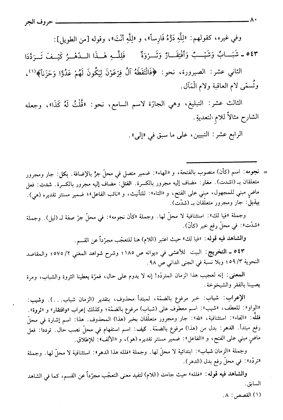 والشاهد فيه قوله: "فيا لك" حيث اعتبر "اللام" هنا للتعجب مجردًا عن القسم.