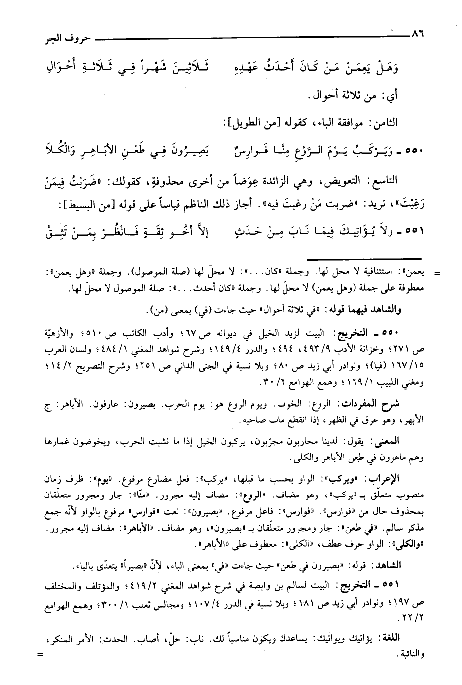 551- التخريج: البيت لسالم بن وابصة في شرح شواهد المغني 2/ 419؛ والمؤتلف والمختلف ص197؛ ونوادر أبي زيد ص181؛ وبلا نسبة في الدرر 4/ 107؛ ومجالس ثعلب 1/ 300؛ وهمع الهوامع 2/ 22.