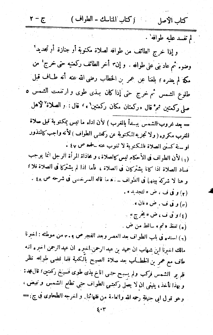 وَإِذا خرج الطَّائِف من طَوَافه لصَلَاة مَكْتُوبَة أَو جَنَازَة أَو تَجْدِيد وضوء ثمَّ عَاد بنى على طَوَافه وَإِن أخر الطَّائِف ركعتيه حَتَّى خرج من مَكَّة لم يضرّهُ بلغنَا عَن عمر بن الْخطاب رَضِي الله عَنهُ أَنه طَاف قبل طُلُوع الشَّمْس ثمَّ خرج حَتَّى إِذا كَانَ بِذِي طوى وَارْتَفَعت الشَّمْس صلى رَكْعَتَيْنِ ثمَّ قَالَ رَكْعَتَانِ مَكَان رَكْعَتَيْنِ قَالَ وَالصَّلَاة لأهل