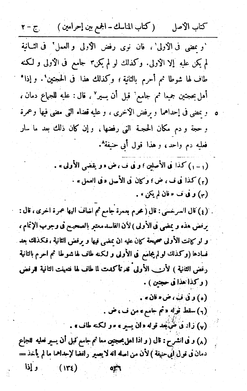 ويمضي فِي الأولى فَإِن نوى رفض الأولى وَالْعَمَل فِي الثَّانِيَة لم يكن عَلَيْهِ إِلَّا الأولى وَكَذَلِكَ لَو لم يكن جَامع فِي الأولى وَلكنه طَاف لَهَا شوطا ثمَّ أحرم بِالثَّانِيَةِ وَكَذَلِكَ هَذَا فِي الحجتين وَإِذا أهل بحجتين جَمِيعًا ثمَّ جَامع قبل أَن يسير قَالَ عَلَيْهِ للجماع دمان ويمضي فِي إِحْدَاهمَا ويرفض الْأُخْرَى وَعَلِيهِ قَضَاء الَّتِي مضى فِيهَا وَعمرَة وَحجَّة وَدم مَكَان الْحجَّة الَّتِي رفضها وَإِن كَانَ ذَلِك بعد مَا سَار فَعَلَيهِ دم وَاحِد وَهَذَا قَول أبي حنيفَة