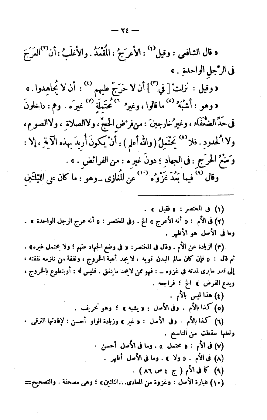 (2) فى الْأُم: «أَنه الْأَعْرَج» إِلَخ. وفى الْمُخْتَصر: «أَنه عرج الرجل الْوَاحِدَة» .