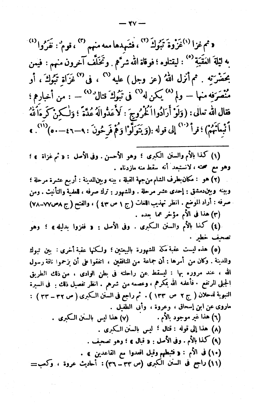 (12) رَاجع فى السّنَن الْكُبْرَى (ص 33- 36) : أَحَادِيث عُرْوَة، وَكَعب ابْن مَالك، وأبى سعيد الْخُدْرِيّ. ثمَّ رَاجع الْكَلَام عَن حَدِيث كَعْب، فى الْفَتْح (ج 8 ص 79- 88 و237- 239) : لفوائده الجليلة.