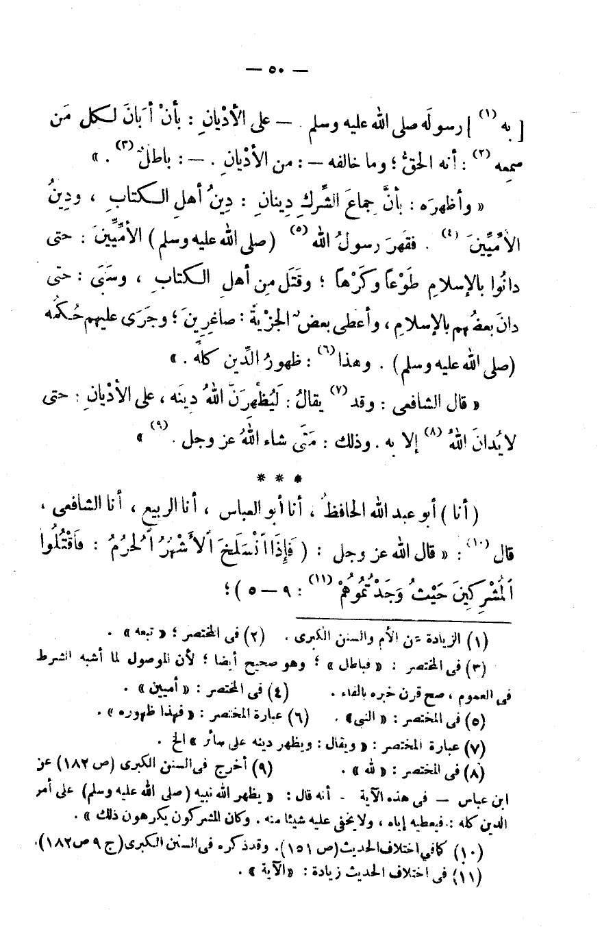 (10) كَمَا فِي اخْتِلَاف الحَدِيث (ص 151) . وَقد ذكره فى السّنَن الْكُبْرَى (ج 9 ص 182) .
