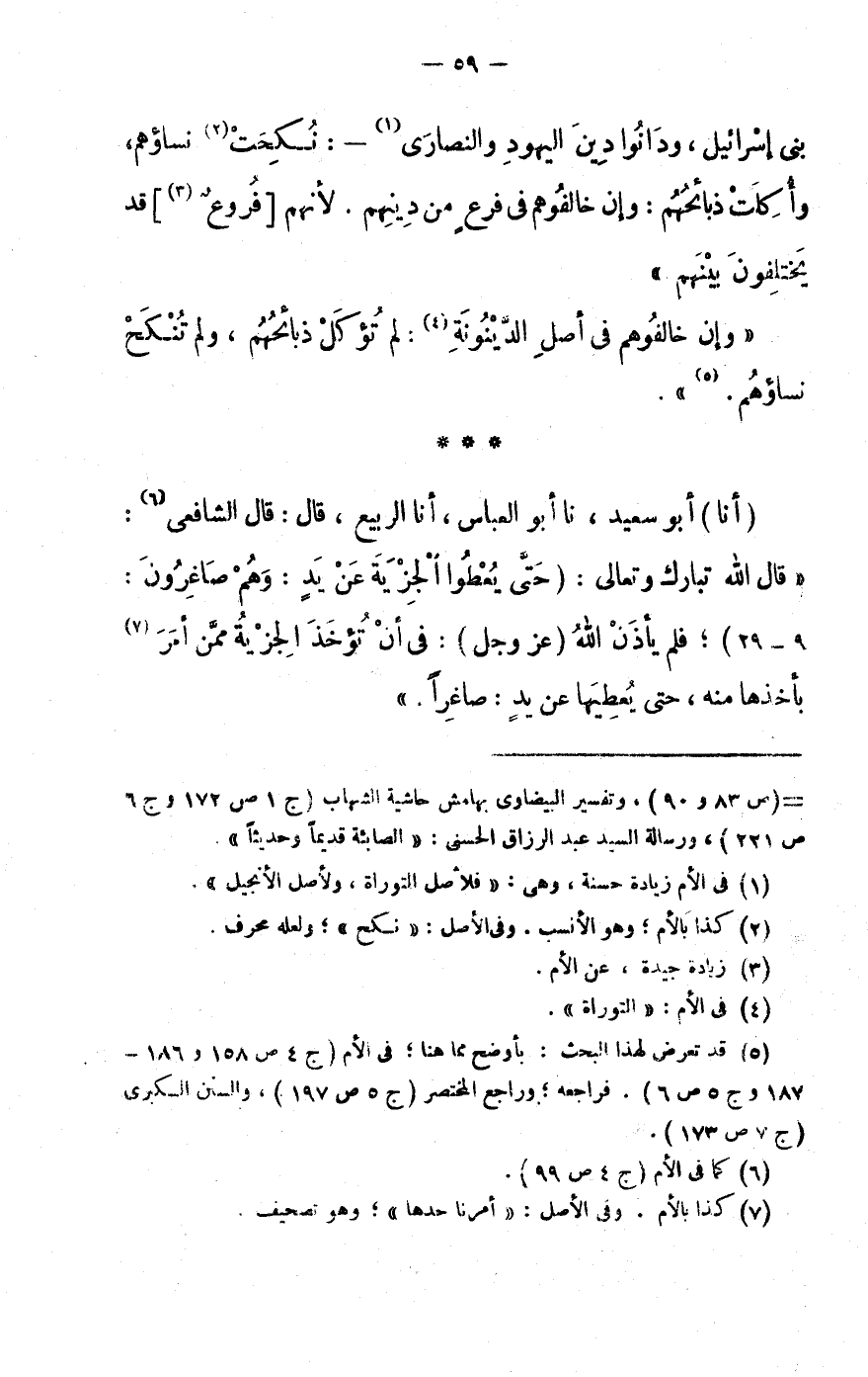 (5) قد تعرض لهَذَا الْبَحْث: بأوضح مِمَّا هُنَا فى الْأُم (ج 4 ص 158 و186- 187 وَج 5 ص 6) . فَرَاجعه وراجع الْمُخْتَصر (ج 5 ص 197) ، وَالسّنَن الْكُبْرَى (ج 7 ص 173) .