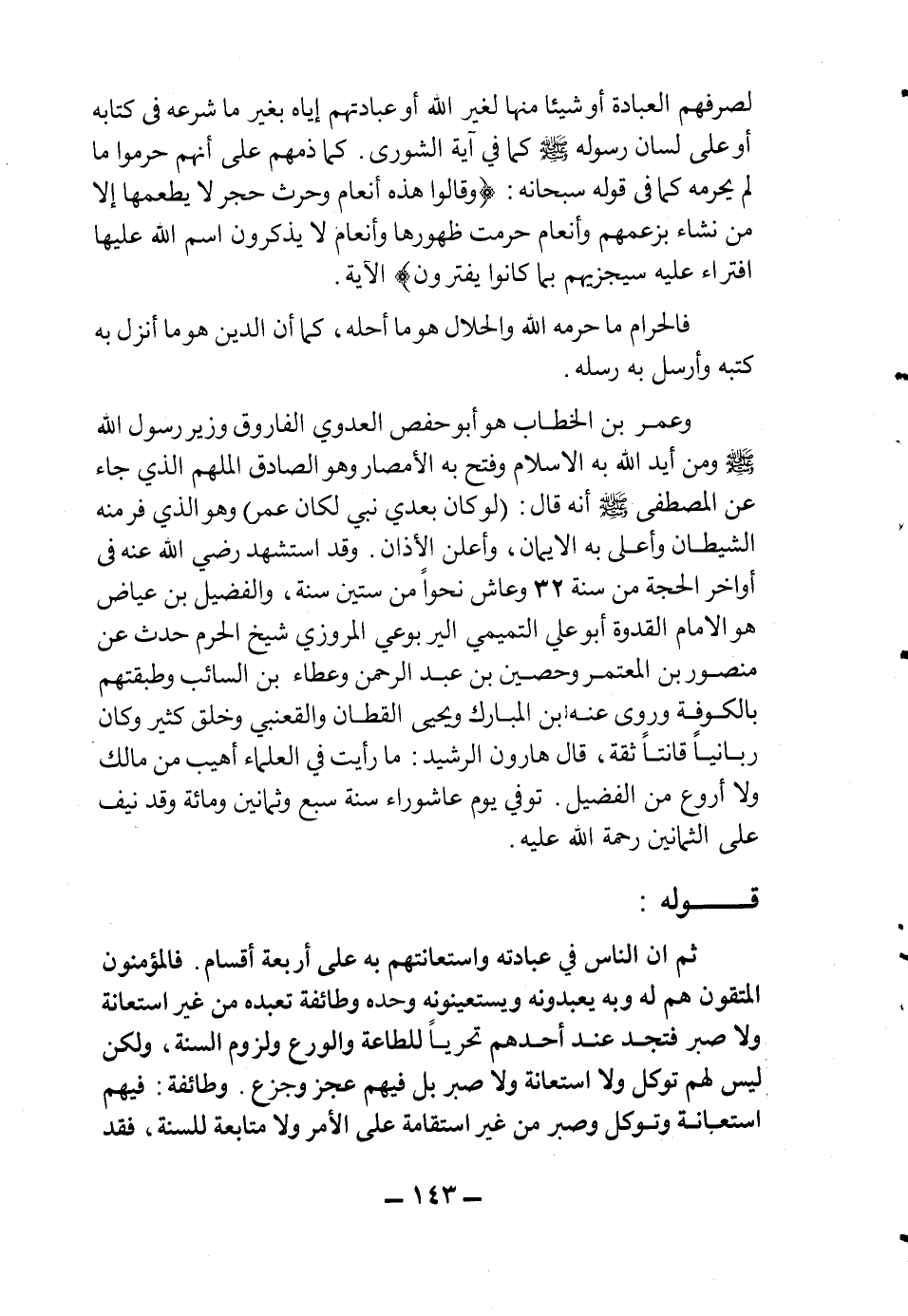 وعمر بن الخطاب هو أبو حفص العدوي الفاروق وزير رسول الله صلى الله عليه وسلم ومن أيد الله به الإسلام وفتح به الأمصار وهو الصادق الملهم الذي جاء عن المصطفى صلى الله عليه وسلم أنه قال: "لو كان بعدي نبي لكان عمر"، وهو الذي فر منه الشيطان وأعلى به الإيمان، وأعلن الأذان. وقد استشهد رضي الله عنه في أواخر الحجة من سنة 32 وعاش نحوا من ستين سنة، والفضيل بن عياض هو الإمام القدوة أبو علي التميمي اليربوعي المروزي شيخ الحرم حدث عن منصور بن المعتمر وحصين بن عبد الرحمن وعطاء بن السائب وطبقتهم بالكوفة وروى عنه ابن المبارك ويحي القطان والقعنبي وخلق كثير وكان ربانيا قانتا ثقة، قال هارون الرشيد: ما رأيت في العلماء أهيب من مالك ولا أورع من الفضيل. توفي يوم عاشوراء سنة سبع وثمانين ومائة وقد نيف على الثمانين رحمة الله عليه.