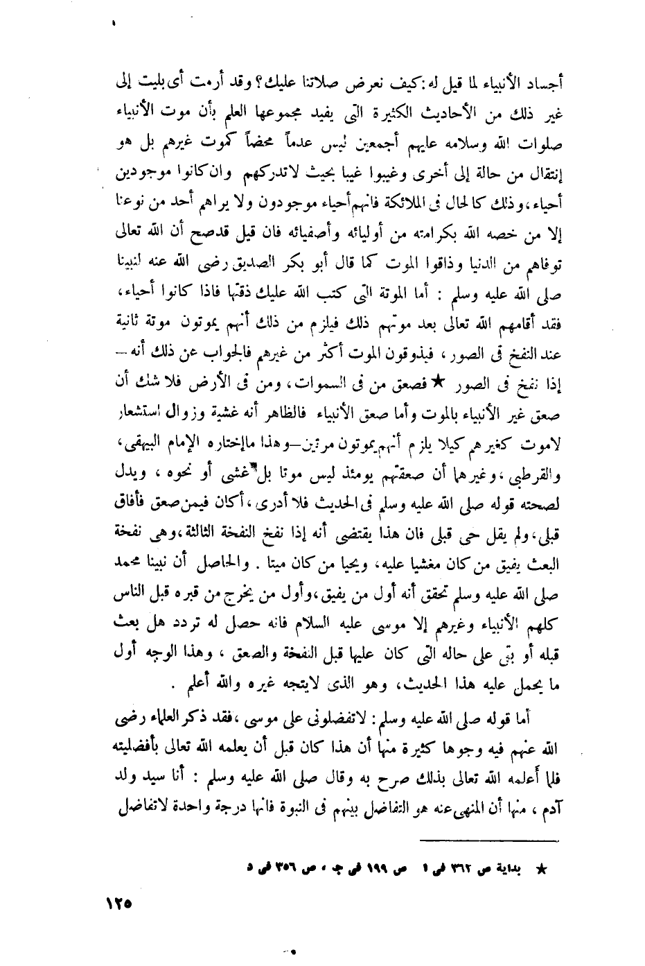وهذا ما اختاره الإِمام البيهقي، والقرطبي، وغيرهما أن صعقتهم يومئذٍ ليس موتًا بل غشي أو نحوه، ويدل لصحته قوله -صلى اللَّه عليه وسلم- في الحديث "فلا أدري، أكان فيمن صعق فأفاق قبلي"، ولم يقل حي قبلي فإن هذا يقتضي أنه إذا نفخ النفخة الثالثة، وهي نفخة البعث يفيق من كان مغشيًا عليه، ويحيا من كان ميتا، والحاصل أن نبينا محمد -صلى اللَّه عليه وسلم- تحقق أنه أول من يفيق، وأول من يخرج من قبره قبل الناس كلهم الأنبياء وغيرهم إلا موسى عليه السلام فإنه حصل له تردد هل بعث قبله أو بقي على حاله التي كان عليها قبل النفخة والصعق، وهذا الوجه أول ما يحمل عليه هذا الحديث، وهو الذي لا يتجه غيره واللَّه أعلم.