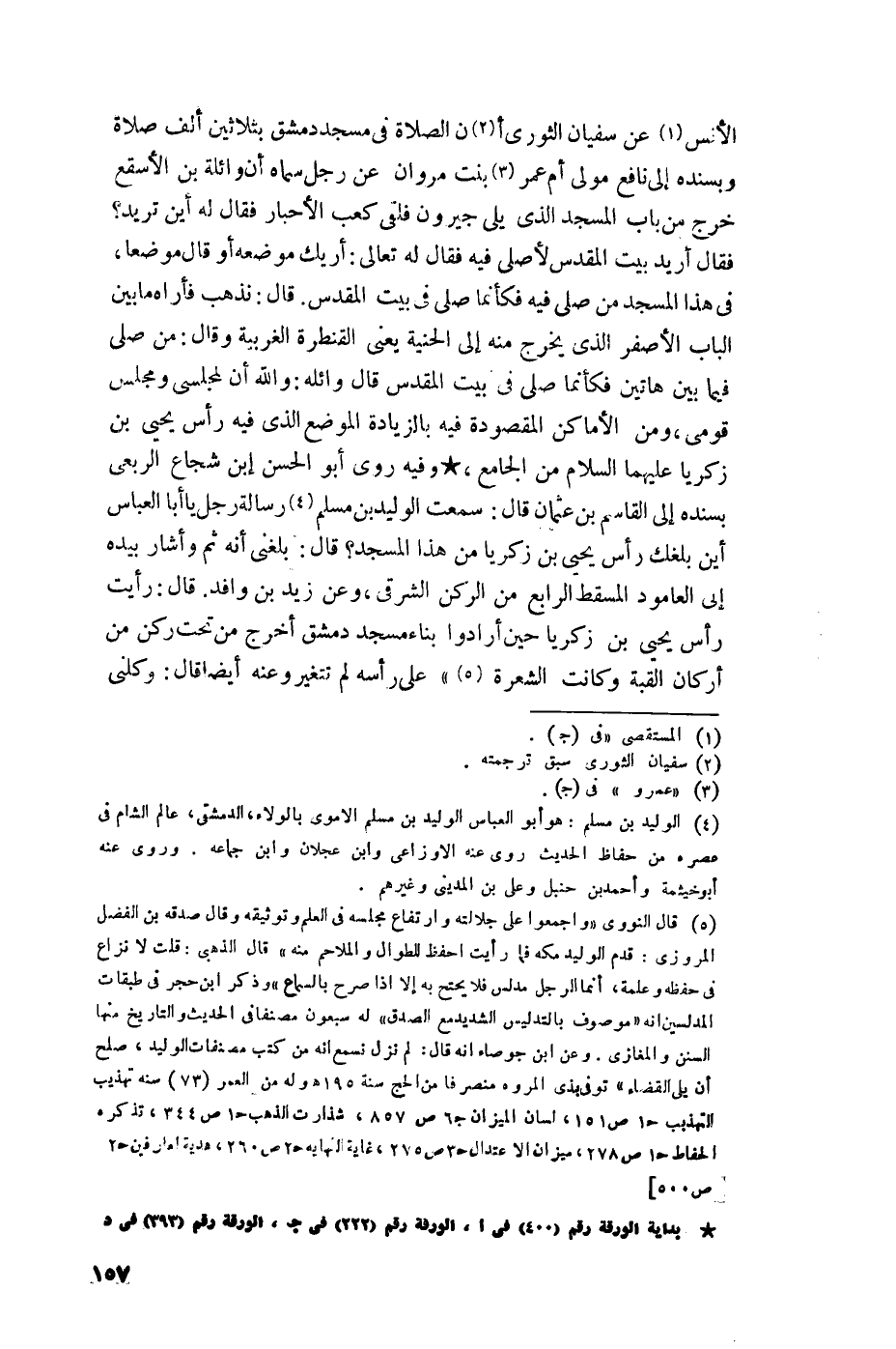 الأنس عن سفيان الثوري أن الصلاة في مسجد دمشق بثلاثين ألف صلاة.
