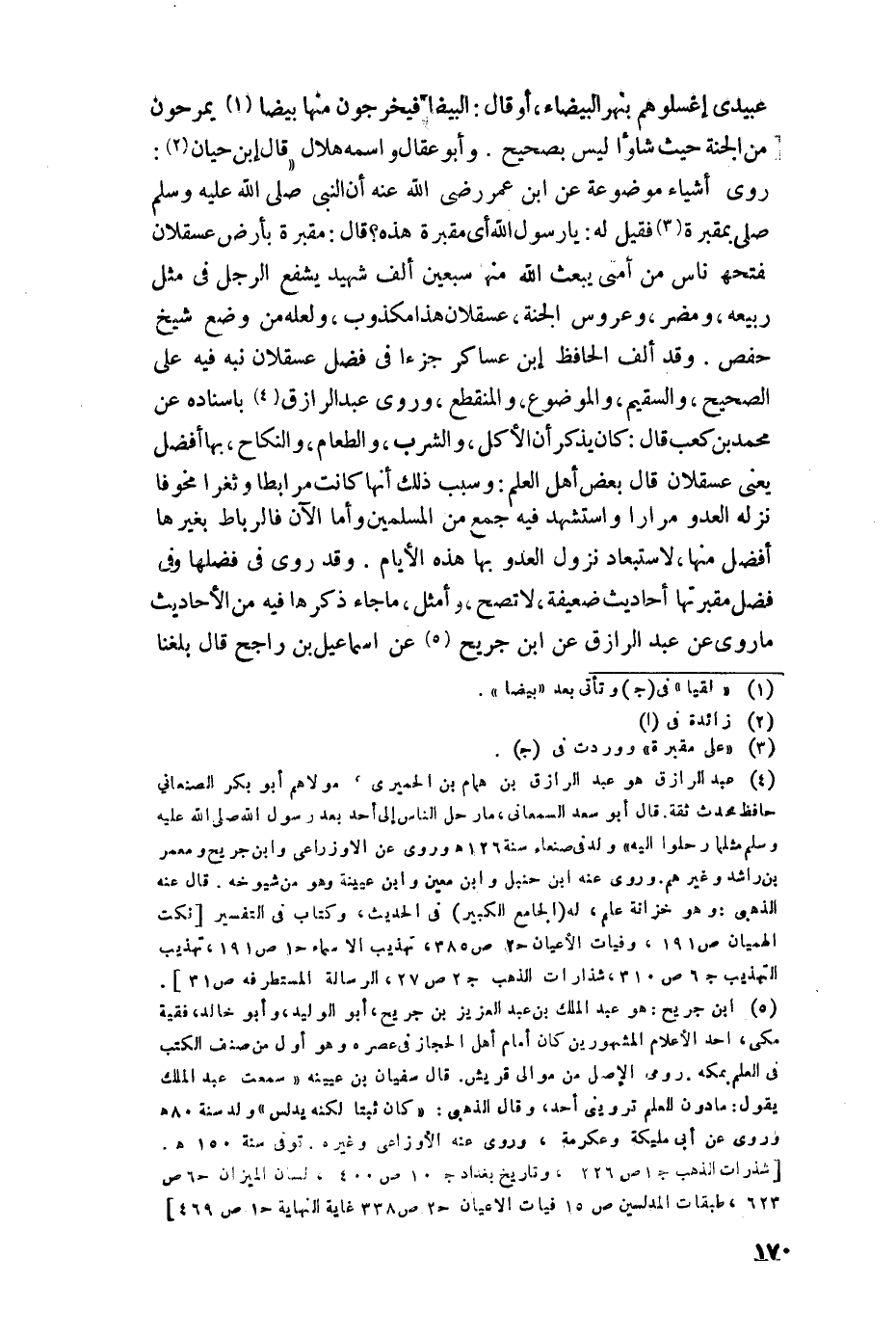 وقد ألف الحافظ ابن عساكر جزءًا في فضل عسقلان نبه فيه على الصحيح والسقيم والموضوع والمنقطع.