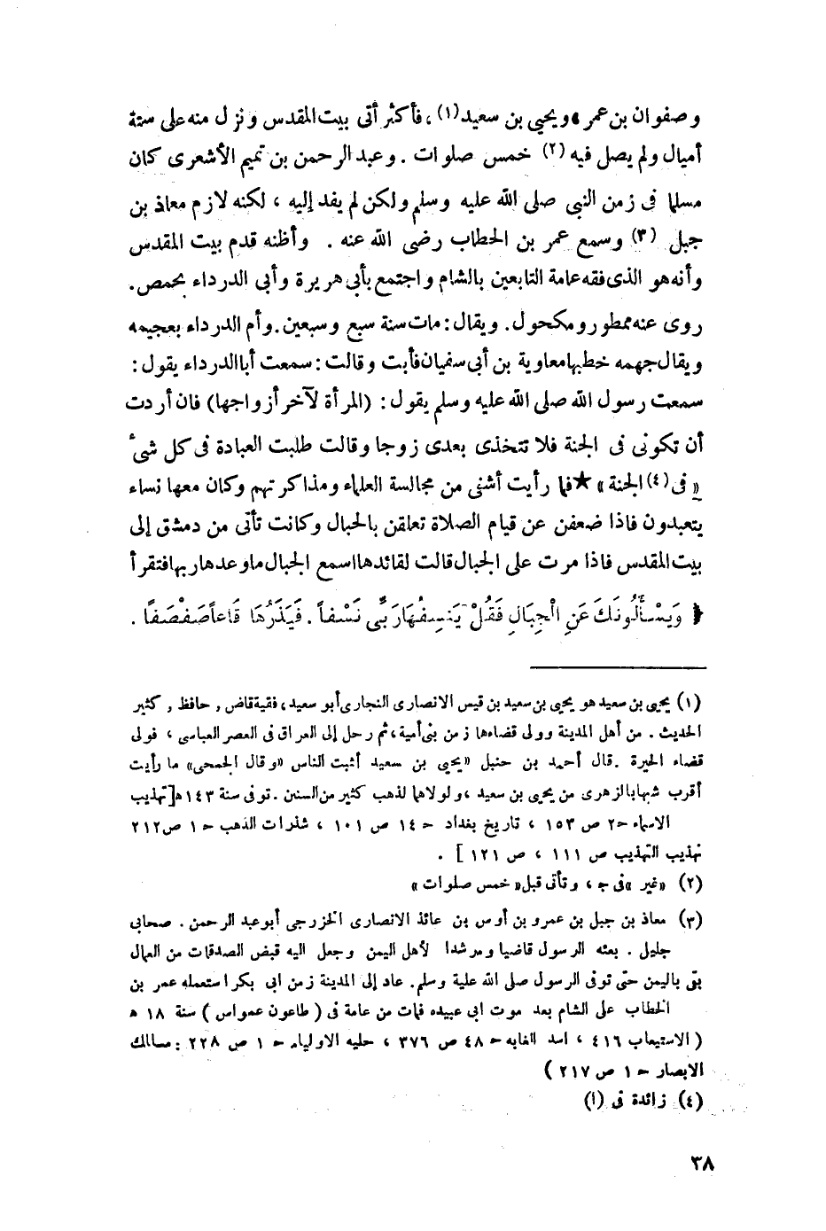 وصفوان بن عمر ويحيى بن سعيد، فأكثر، أتى بيت المقدس ونزل منه على ستة أميال ولم يصل فيه خمس صلوات.