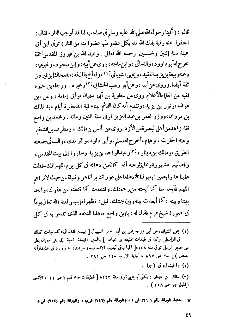 وعبد اللَّه بن فيروز المقدس ثقة خرج له أبو داود، والنسائي، وابن ماجة، روى عن أبيه، وابن مسعود، وغيرهما، وعنه ربيعة بن يزيد العقيد، ويحيى الشيباني وله أخ يقال له: "الضحاك بن فيروز ثقة أيضًا وروى عن أبيه، وعن أبي وهب الخشابي وغيره، ورجاء بن حيوة فقيه من العلماء الأعلام روى عن معاوية بن أبي سفيان، وأبي أمامة، وعن ابن عوف، وثور بن يزيد، وتقدم أنه كان القائم ببناء قبة الصخرة أيام عبد الملك بن مروان ووزيرا لعمر بن عبد العزيز توفي سنة اثنين ومائة.