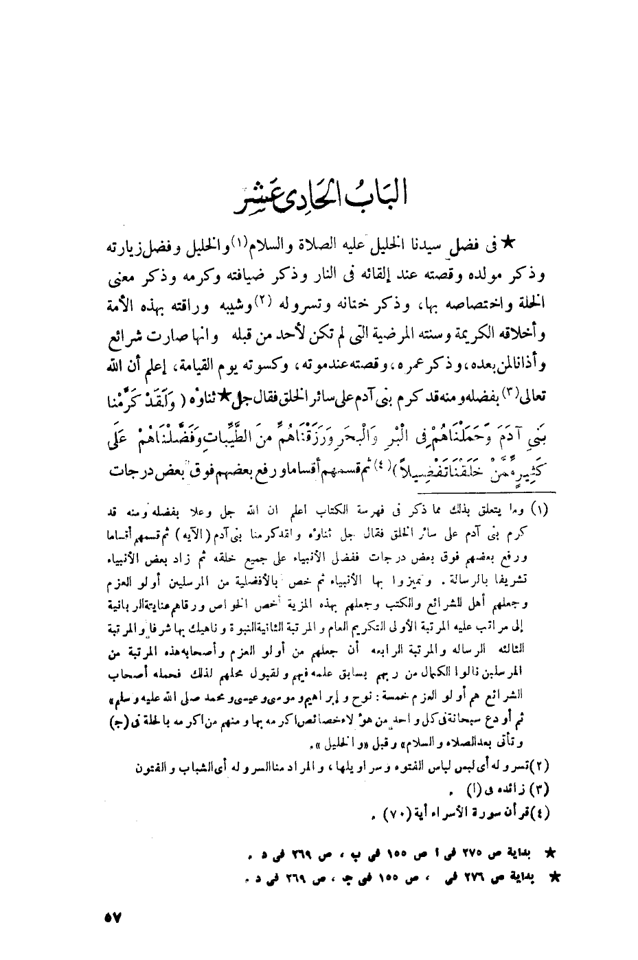 في فضل سيدنا الخليل عليه الصلاة والسلام وفضل زيارته وذكر مولده وقصته عند إلقائه في النار وذكر ضيافته وكرمه وذكر معنى الخلة واختصاصه بها، وذكر ختانه وتسروله وشيبه ورأفته جهذه الأمة وأخلاقه الكريمة وسنته المرضية التي لم تكن لأحد من قبله وأنها صارت شرائع وآدابا لمن بعده، وذكر عمره، وقصته عند موته، وكسوته يوم القيامة.