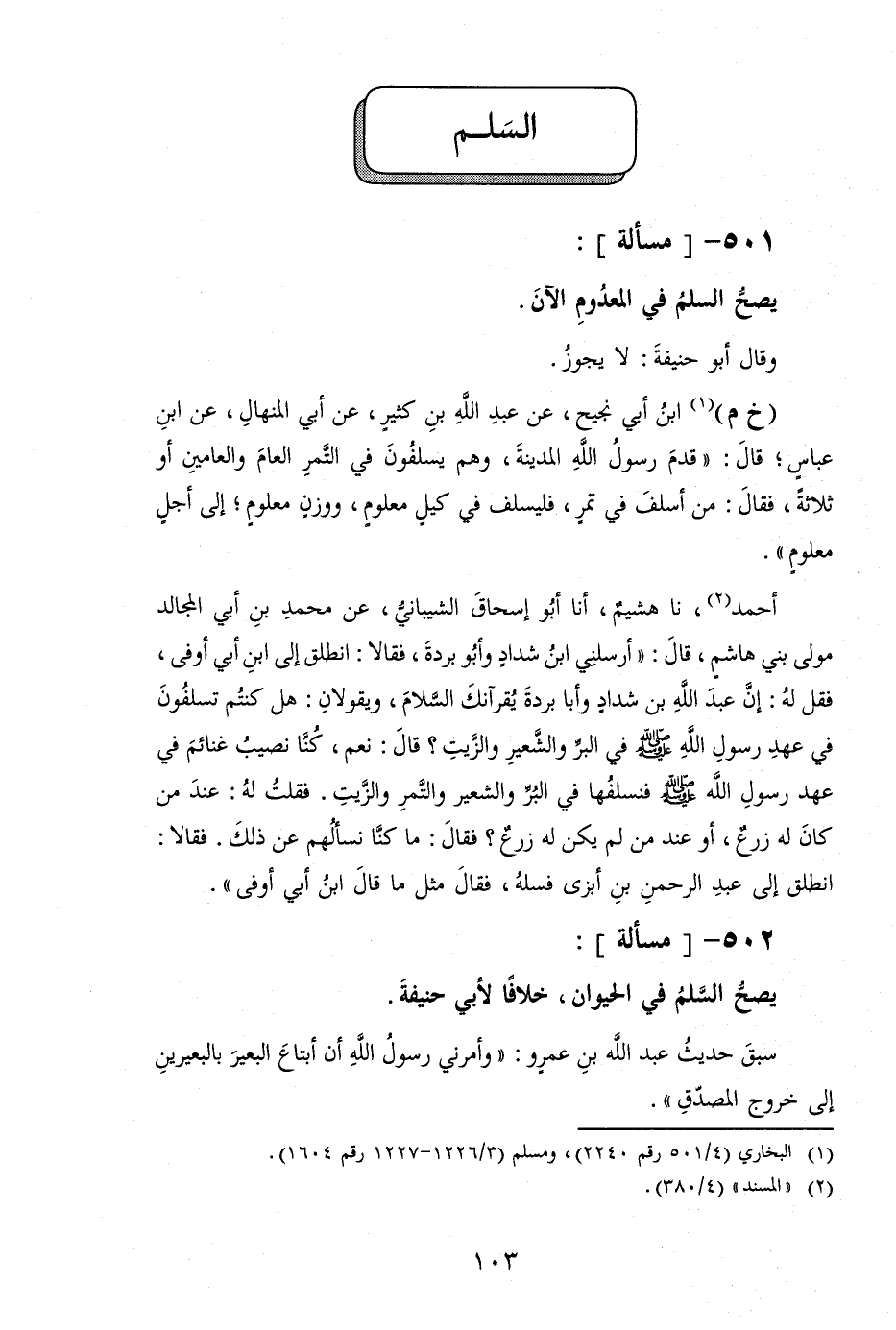 يصحُّ السَّلمَ فِي الْحَيَوَان، خلافًا لأبي حنيفةَ.
