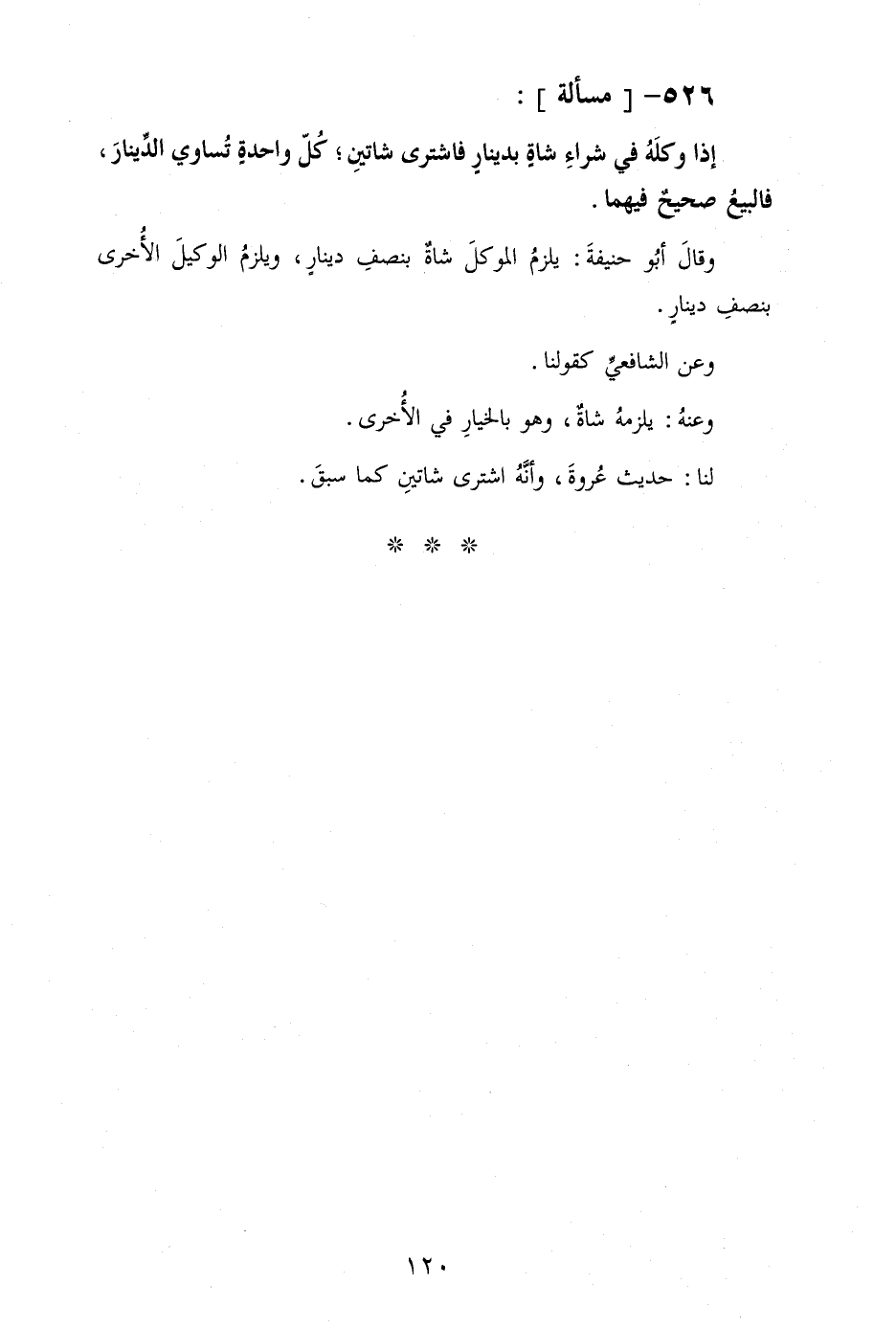 وَقَالَ أَبُو حنيفَة: يلْزم الْمُوكل شَاة بِنصْف دِينَار، وَيلْزم الْوَكِيل الْأُخْرَى بِنصْف دِينَار.