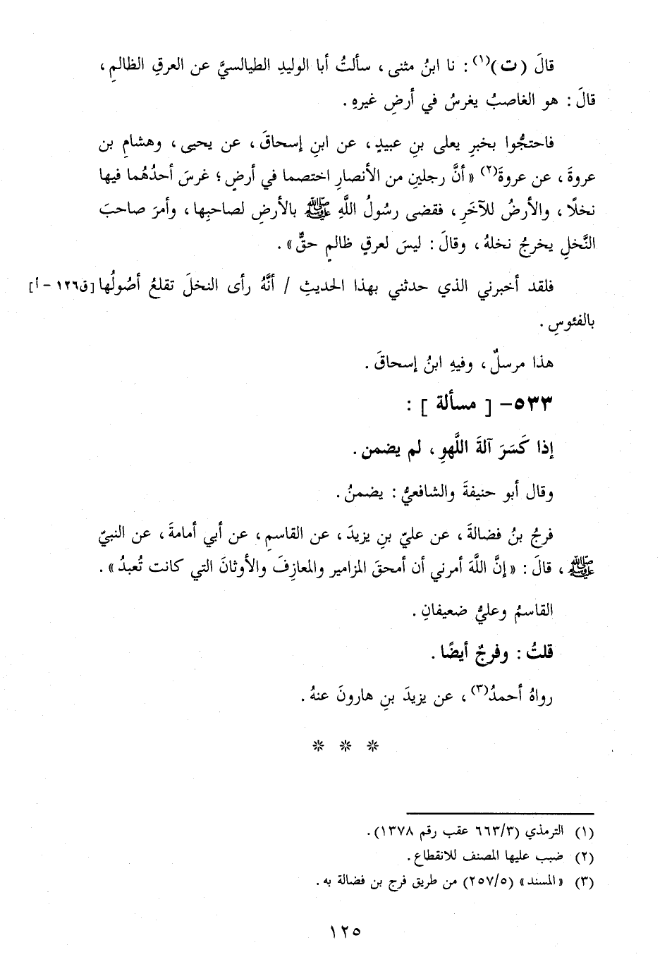 قَالَ (ت) : نَا ابْن مثنى، سَأَلت أَبَا الْوَلِيد الطَّيَالِسِيّ عَن العرقِ الظالمِ، قَالَ: هُوَ الْغَاصِب يغْرس فِي أَرض غَيره.