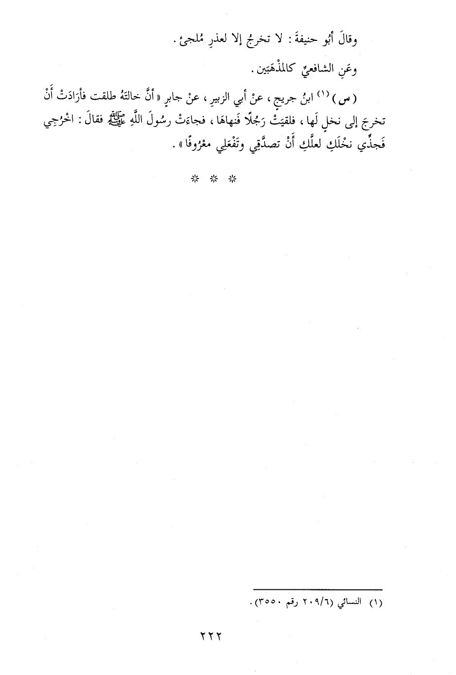 (س) ابْن جريج، عَن أبي الزبير، عَن جَابر " أَن خَالَته طلقت فَأَرَادَتْ أَن تخرج إِلَى نخل لَهَا، فَلَقِيت رجلا فَنَهَاهَا، فَجَاءَت رَسُول الله [صلى الله عَلَيْهِ وَسلم] فَقَالَ: اخْرُجِي فجذي نخلك لَعَلَّك أَن تصدقي وتفعلي مَعْرُوفا ".