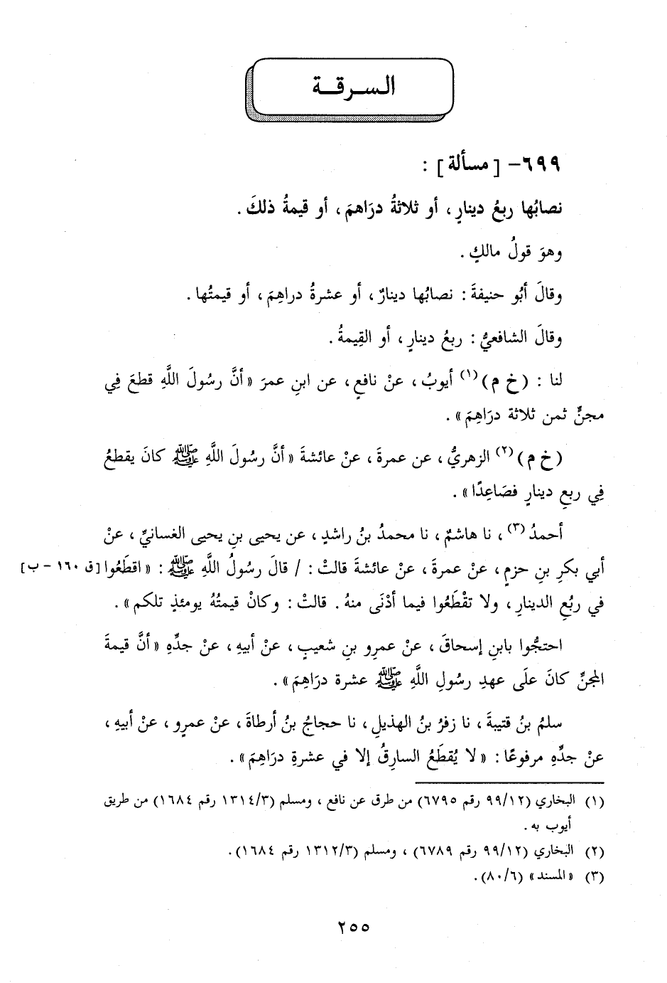 (خَ م) الزُّهْرِيّ، عَن عمْرَة، عَن عَائِشَة " أَن رَسُول الله [صلى الله عَلَيْهِ وَسلم] كَانَ يقطع فِي ربع دِينَار فَصَاعِدا ".