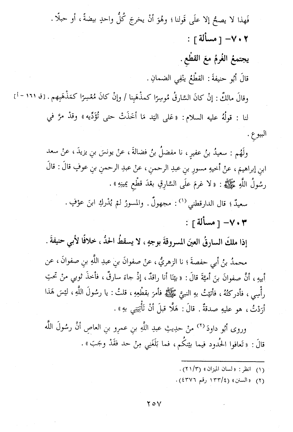وَلَهُم: سعيد بن عفير، نَا مفضل بن فضَالة، عَن يُونُس بن يزِيد، عَن سعد ابْن إِبْرَاهِيم، عَن أَخِيه مسور بن عبد الرَّحْمَن، عَن عبد الرَّحْمَن بن عَوْف قَالَ: قَالَ رَسُول الله [صلى الله عَلَيْهِ وَسلم] : " لَا غرم على السَّارِق بعد قطع يَمِينه ".
