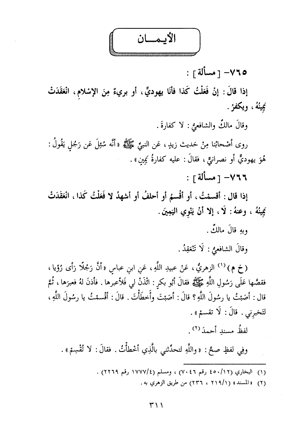 روى أَصْحَابنَا من حَدِيث زيد، عَن النَّبِي [صلى الله عَلَيْهِ وَسلم] " أَنه سُئِلَ عَن رجل يَقُول: هُوَ يَهُودِيّ أَو نَصْرَانِيّ، فَقَالَ: عَلَيْهِ كَفَّارَة يَمِين ".