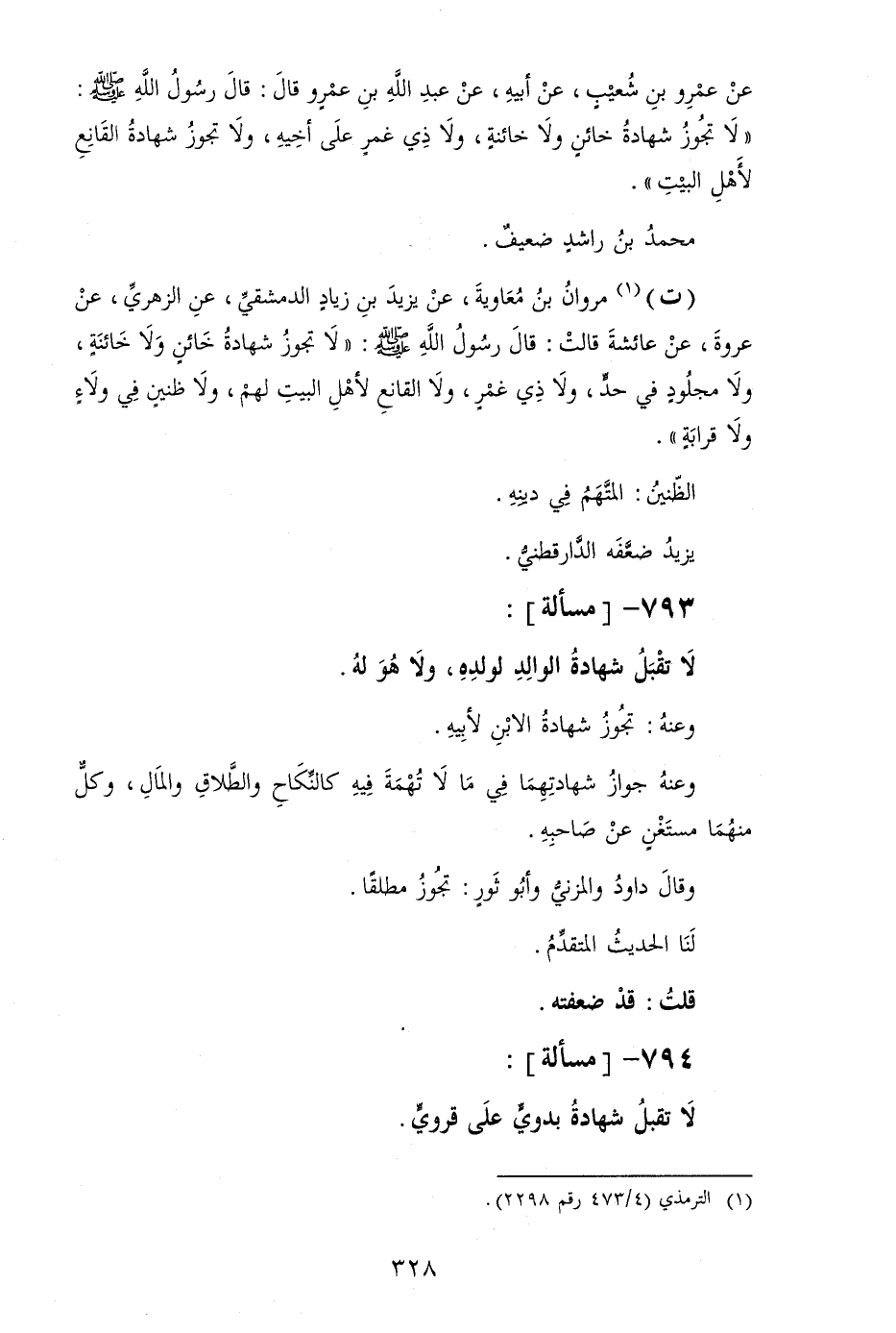 (ت) مَرْوَان بن مُعَاوِيَة، عَن يزِيد بن زِيَاد الدِّمَشْقِي، عَن الزُّهْرِيّ، عَن عُرْوَة، عَن عَائِشَة قَالَت: قَالَ رَسُول الله [صلى الله عَلَيْهِ وَسلم] : " لَا تجوز شَهَادَة خائن وَلَا خَائِنَة، وَلَا مجلود فِي حد، وَلَا ذِي غمرٍ، وَلَا القانع لأهل الْبَيْت لَهُم، وَلَا ظنين فِي ولاءٍ وَلَا قرَابَة ".