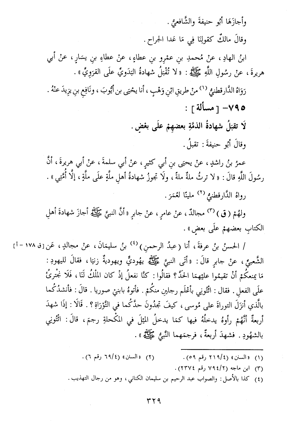 وَلَهُم (ق) مجَالد، عَن عَامر، عَن جَابر " أَن النَّبِي [صلى الله عَلَيْهِ وَسلم] أجَاز شَهَادَة أهل الْكتاب بَعضهم على بعض ".