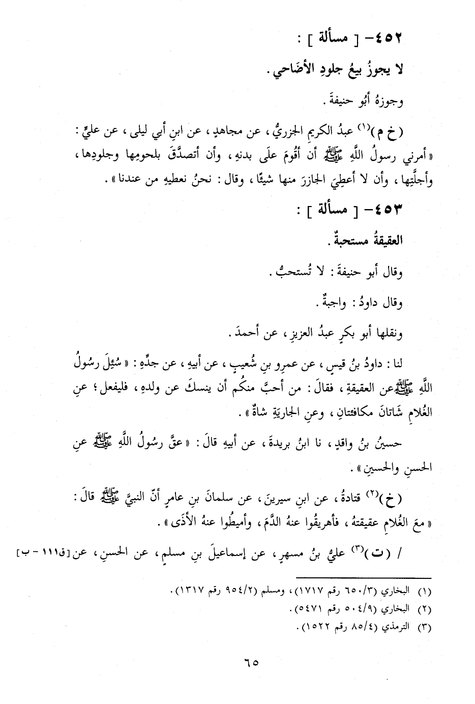 حُسَيْن بن وَاقد، نَا ابْن بُرَيْدَة، عَن أَبِيه قَالَ: " عق رَسُول الله [صلى الله عَلَيْهِ وَسلم] عَن الْحسن وَالْحُسَيْن ".
