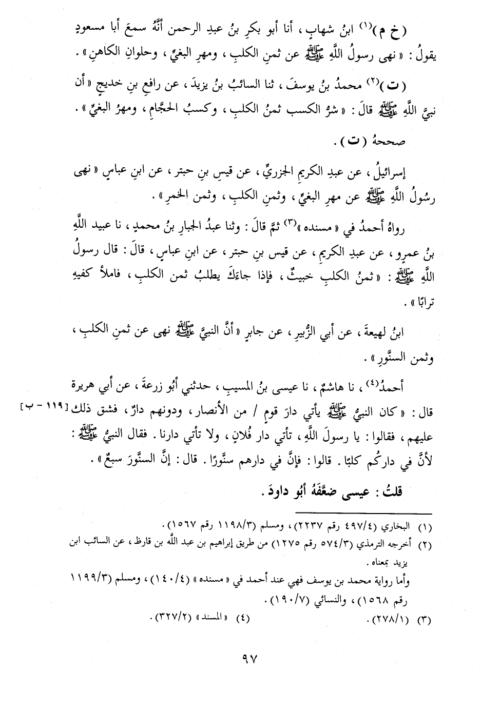 (خَ م) ابْن شهَاب، أَنا أَبُو بكر بن عبد الرَّحْمَن أَنه سمع أَبَا مَسْعُود يَقُول: " نهى رَسُول الله [صلى الله عَلَيْهِ وَسلم] عَن ثمن الْكَلْب، وَمهر الْبَغي، وحلوان الكاهن ".