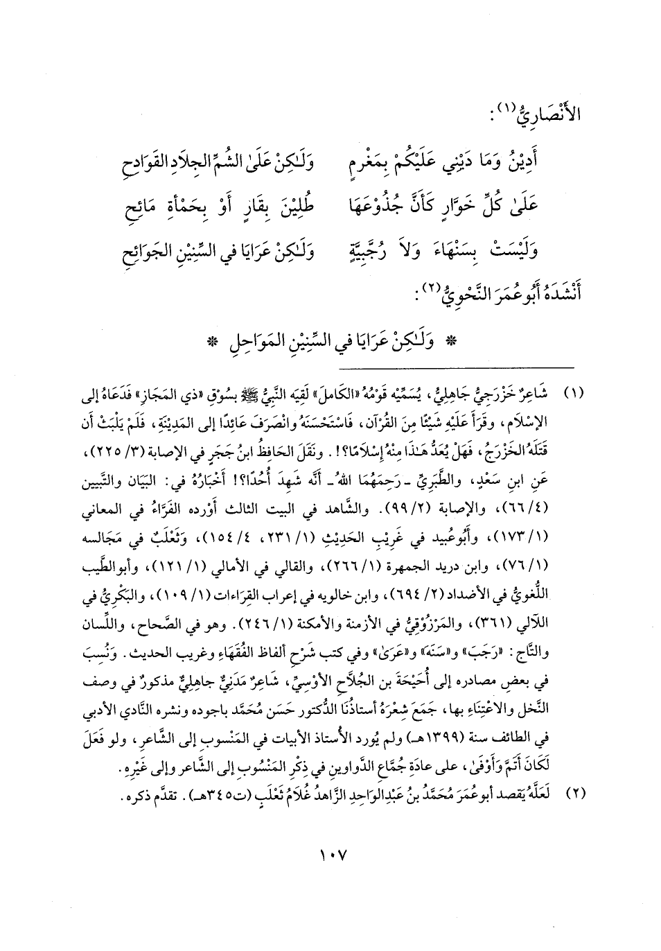 (¬1) شَاعِرٌ خَزْرَجِيُّ جَاهِلِيُّ، يُسَمِّيه قَوْمُهُ "الكَاملَ" لَقِيَه النَّبِيُّ - صلى الله عليه وسلم - بسُوْقِ"ذي المَجَازِ" فَدَعَاهُ إلى الإسْلام، وقَرَأَ عَلَيهِ شيئًا مِنَ القُرْآن، فَاسْتَحْسَنَهُ وانْصَرَفَ عَائِدًا إلى المَدِينَةِ، فَلَمْ يَلْبَثْ أَن قَتَلَهُ الخَزْرَجُ، فَهَلْ يُعَدُّ هَذَا مِنْهُ إِسْلامًا؟ ! . ونَقَلَ الحَافِظُ ابنُ حَجَرٍ في الإصابة (3/ 225)، عَنِ ابنِ سَعْدٍ، والطَّبَرِيِّ -رَحِمَهُمَا اللهُ- أنه شَهِدَ أُحُدًا؟ ! أَخْبَارُهُ في: البَيَان والتَّبيين (4/ 66)، والإصابة (2/ 99). والشَّاهد في البيت الثالث أَوْرده الفَرَّاءُ في المعاني (1/ 173)، وأَبُو عُبيد في غَرِيبِ الحَدِيثِ (1/ 231، 4/ 154)، وَثَعْلَبٌ في مَجَالسه (1/ 76)، وابن دريد الجمهرة (1/ 266)، والقالي في الأمالي (1/ 121)، وأبو الطَّيب اللُّغويُّ في الأضداد (2/ 694)، وابن خالويه في إعراب القِرَاءات (1/ 109)، والبَكْرِي في اللآلي (361)، والمَرْزُوْقِيُّ في الأزمنة والأمكنة (1/ 246). وهو في الصَّحاح، واللِّسان والتَّاج: "رَجَبَ" و"سَنَه" و"عَرَى" وفي كتب شَرْحِ ألفاظ الفُقَهَاءِ وغريب الحديث. وَنُسِبَ في بعضِ مصادره إلى أُحَيحَةَ بن الجُلَّاحِ الأوْسِيّ، شَاعِرٌ مَدَنِيٌّ جاهِلِيٌّ مذكورٌ في وصف النَّخل والاعْتِنَاءِ بها، جَمَعَ شِعْرَهُ أستاذُنَا الدُّكتور حَسَن مُحَمَّد باجوده ونشره النَّادي الأدبي في الطائف سنة (1399 هـ) ولم يُورد الأستاذ الأبيات في المَنْسوبِ إلى الشَّاعرِ، ولو فَعَلَ لَكَانَ أَتَمَّ وَأَوْفَى، على عادَةِ جُمَّاعِ الدَّواوينِ في ذِكْرِ المَنْسُوبِ إلى الشَاعر وإلى غَيرِهِ.