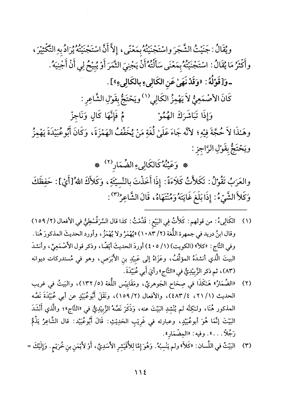 كَانَ الأصْمَعِيُّ لَا يَهْمِزُ الكَالِي (¬1) ويَحْتَجُّ بِقَوْلِ الشَّاعِرِ: