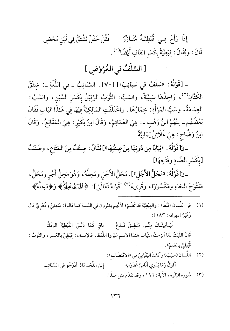 -[قَوْلُهُ: "سَلَفٌ في سَبائِبَ"] [70]. السَّبَائِبُ -في اللُّغَةِ-: شِقَقُ الكَتَّانِ (¬2)، وَاحِدُهَا سَبِيبَةٌ، والسِّبُّ: الثُّوْبُ الرَّقِيقُ بِكَسْرِ السِّينِ، والسِّبُ: العِمَامَةُ، وسَبُّ المَرْأَةِ: خِمَارُهَا. واخْتَلَفَتِ المَالِكِيَّةُ فِيهَا في هَذَا البَابِ فَقَال بَعْضُهُم -مِنْهُمُ ابنُ وَهْبٍ-: هِيَ العَمَائِمُ، وَقَال ابنُ بكَيرٍ: هِيَ المَقَانِعُ. وَقَال ابنُ وَضَّاحٍ: هِيَ غَلائِلُ يَمَانِيَّةٌ.