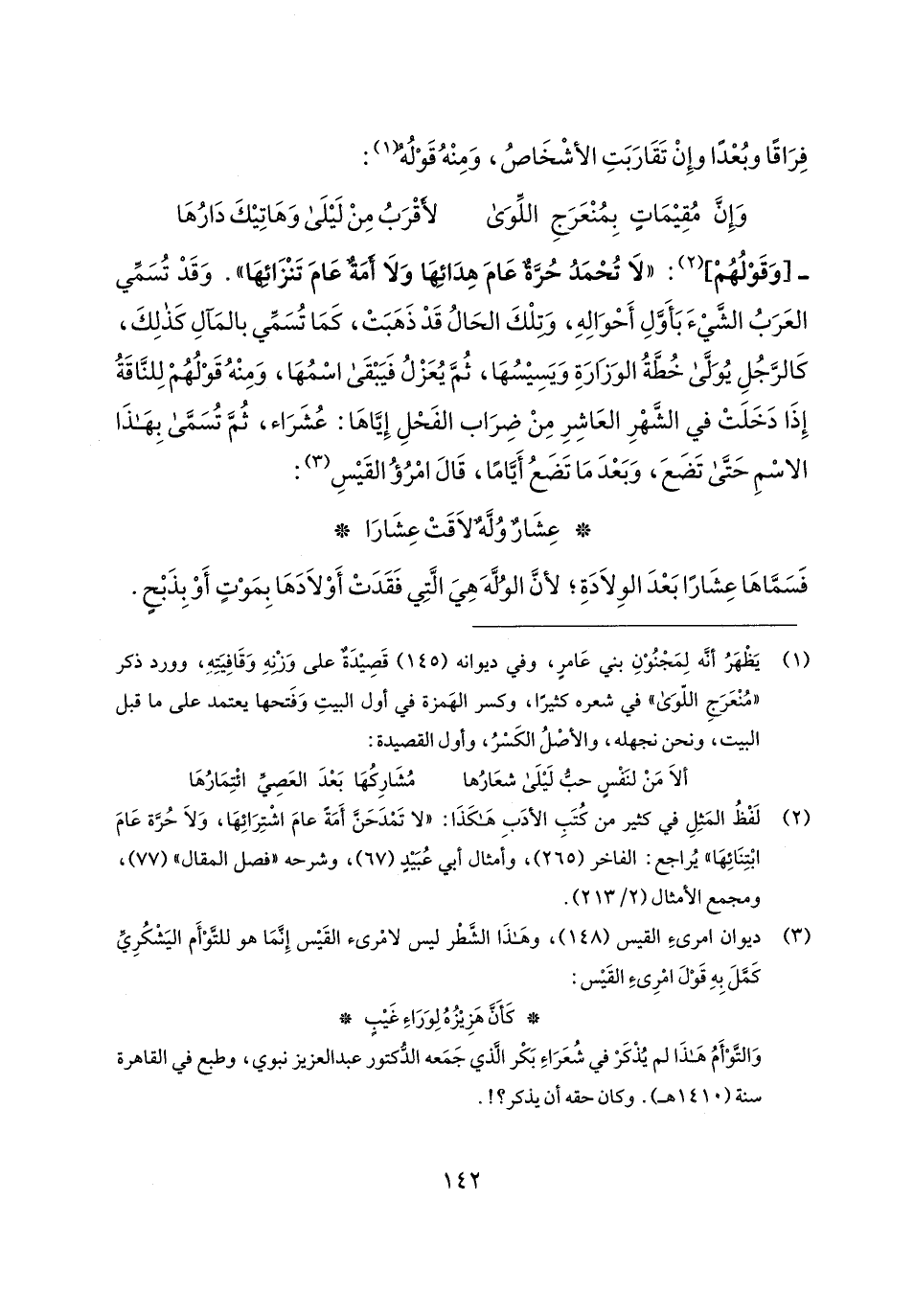 (¬1) يَظْهَرُ أنَّه لِمَجْنُوْنِ بني عَامرٍ، وفي ديوانه (145) قَصِيدَةٌ على وَزْنِهِ وَقَافِيَتِهِ، وورد ذكر "مُنْعَرَجِ اللّوَى" في شعره كثيرًا، وكسر الهَمزة في أول البيتِ وَفَتحها يعتمد على ما قبل البيت، ونحن نجهله، والأصْلُ الكَسْرُ، وأول القصيدة: