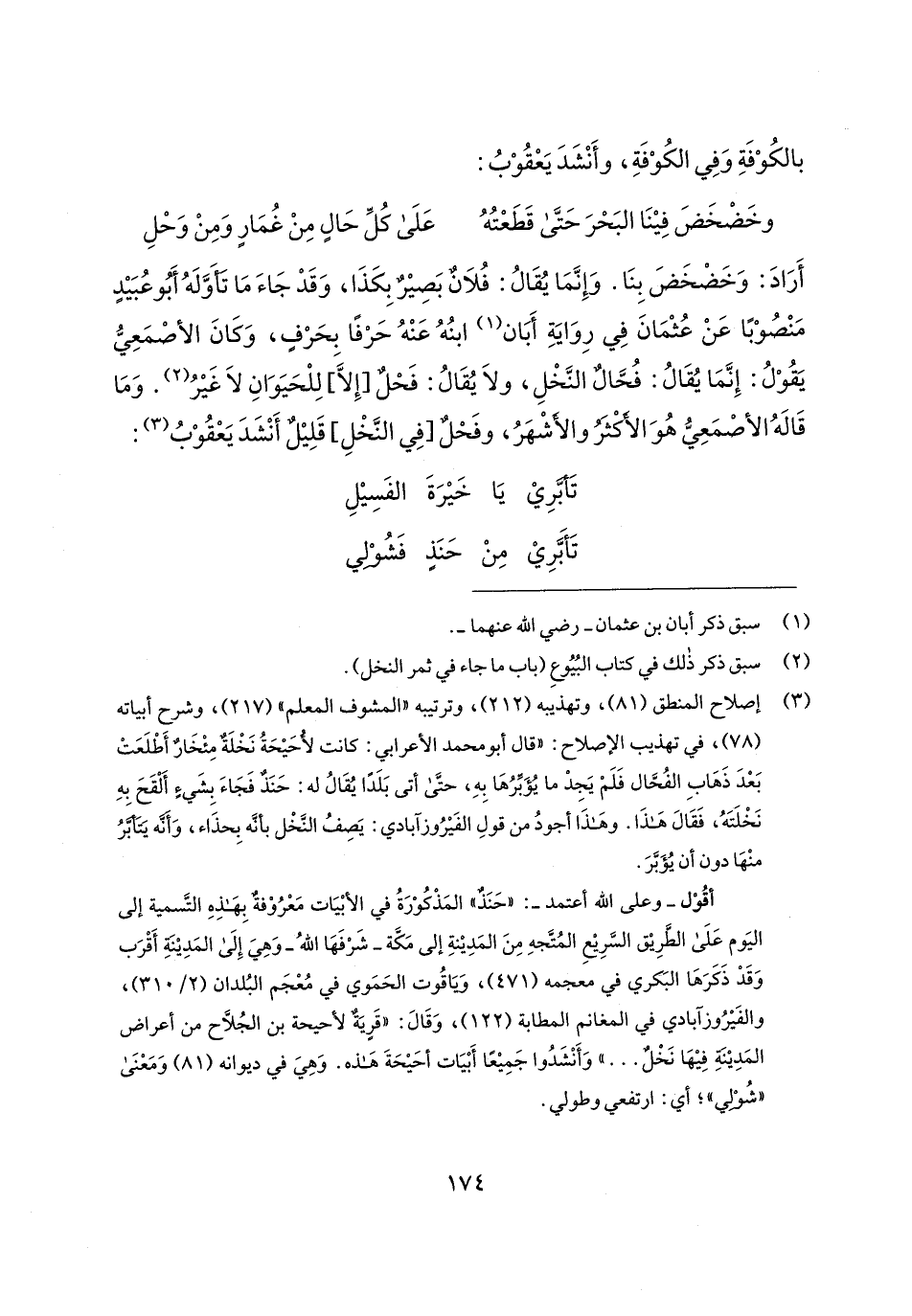 أَرَادَ: وَخَضْخَضَ بِنَا. وَإِنَّمَا يُقَالُ: فُلانٌ بَصِيرٌ بِكَذَا، وَقَدْ جَاءَ مَا تَأَوَّلَهُ أَبُو عُبَيدٍ مَنْصُوْبًا عَنْ عُثْمَانَ فِي رِوَايَةِ أَبَان (¬1) ابنُهُ عَنْهُ حَرْفًا بحَرْفٍ، وَكَانَ الأصْمَعِيُّ يَقُوْلُ: إِنَّمَا يُقَالُ: فُحَّالٌ النَّخْلِ، ولا يُقَالُ: فَحْلٌ [إِلَّا] لِلْحَيَوَانِ لَا غَيرُ (¬2). وَمَا قَالهُ الأصْمَعِيُّ هُوَ الأكْثَرُ والأشْهَرُ، وفَحْلٌ [فِي النَّخْلِ] قَلِيلٌ أَنْشَدَ يَعْقُوْبُ (¬3):