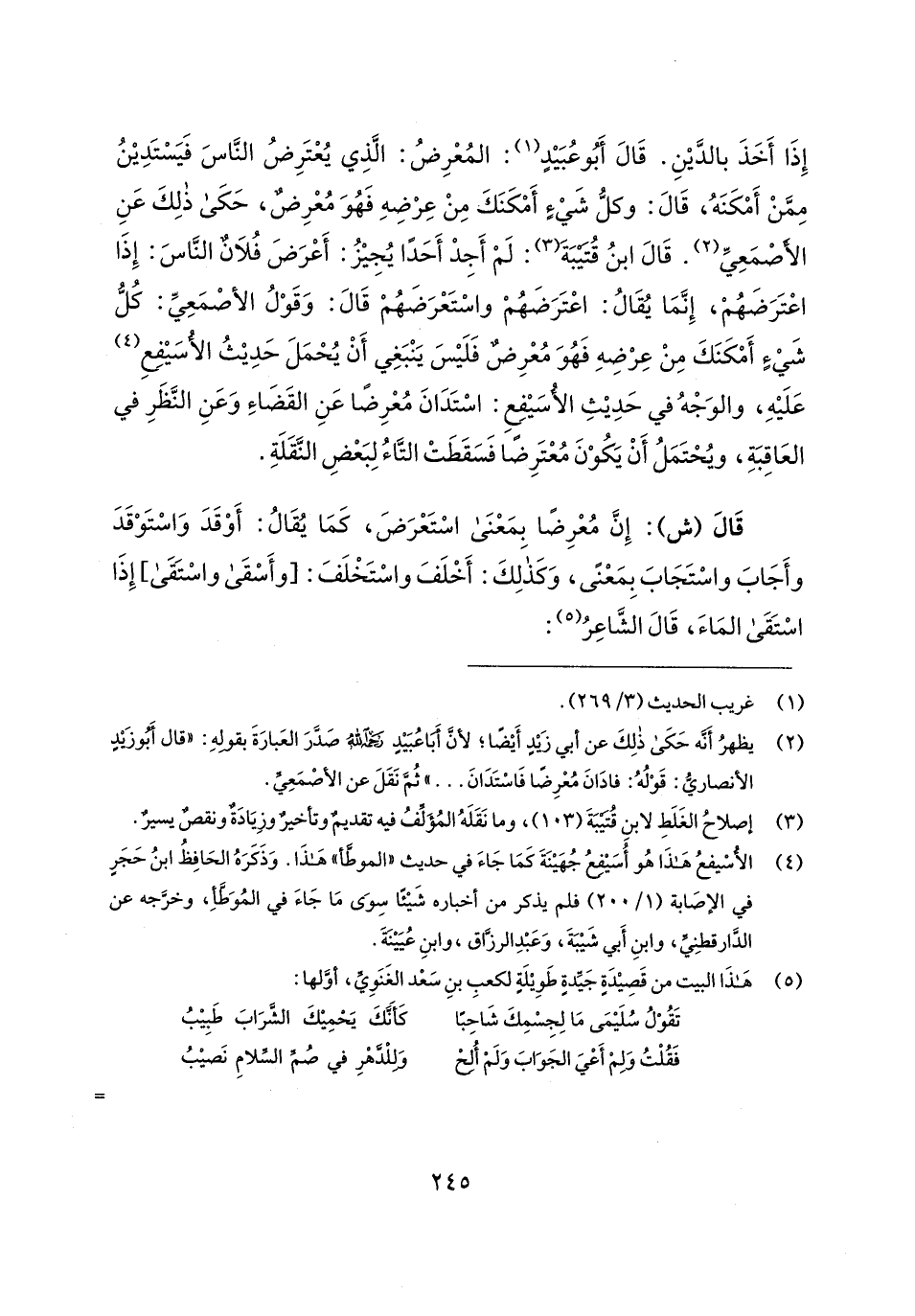 (¬2) يظهرُ أَنَّه حَكَى ذلِكَ عن أبي زَيدٍ أَيضًا؛ لأنَّ أَبَا عُبَيدٍ رحمه الله صَدَّرَ العَبارَةَ بقولهِ: "قال أَبُو زَيدٍ الأنصاريُّ: قَوْلُهُ: فادَانَ مُعْرِضًا فَاسْتَدَانَ ... " ثُمَّ نَقَلَ عن الأصْمَعِيِّ.