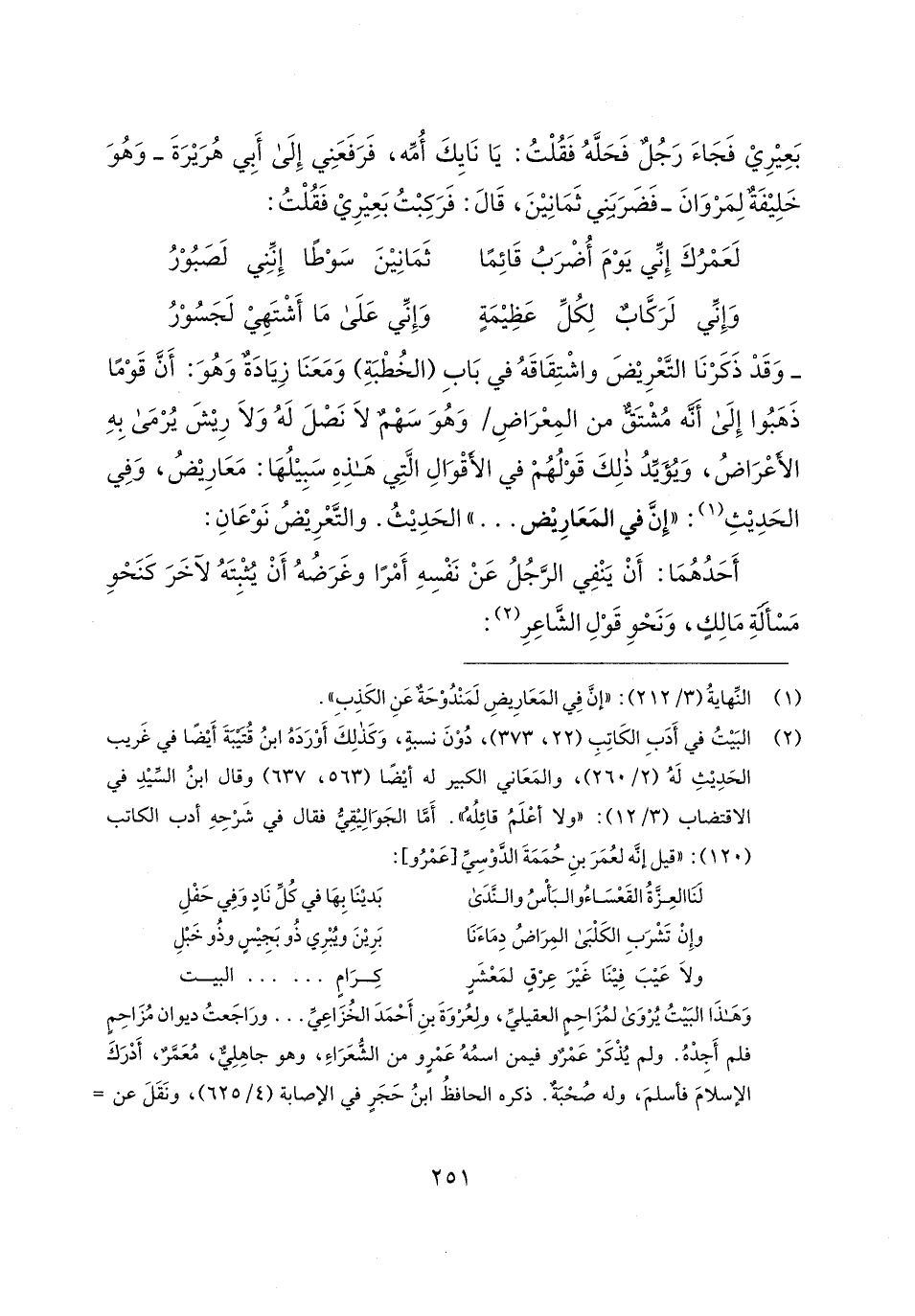 وَهَذَا البَيتُ يُرْوَى لمُزَاحِمٍ العقيليِّ، ولعُرْوَةَ بنِ أَحْمَدَ الخُزَاعِيِّ ... ورَاجَعتُ ديوان مُزَاحِمٍ فلم أَجِدْهُ. ولم يُذْكَرْ عَمْرٌو فيمن اسمُهُ عَمْرٍو من الشُّعَرَاءِ، وهو جاهِلِيٌّ، مُعَمَّرٌ، أَدْرَكَ الإسلامَ فأسلمَ، وله صُحْبَةٌ. ذكره الحافظُ ابنُ حَجَرٍ في الإصابة (4/ 625)، ونَقَلَ عن =