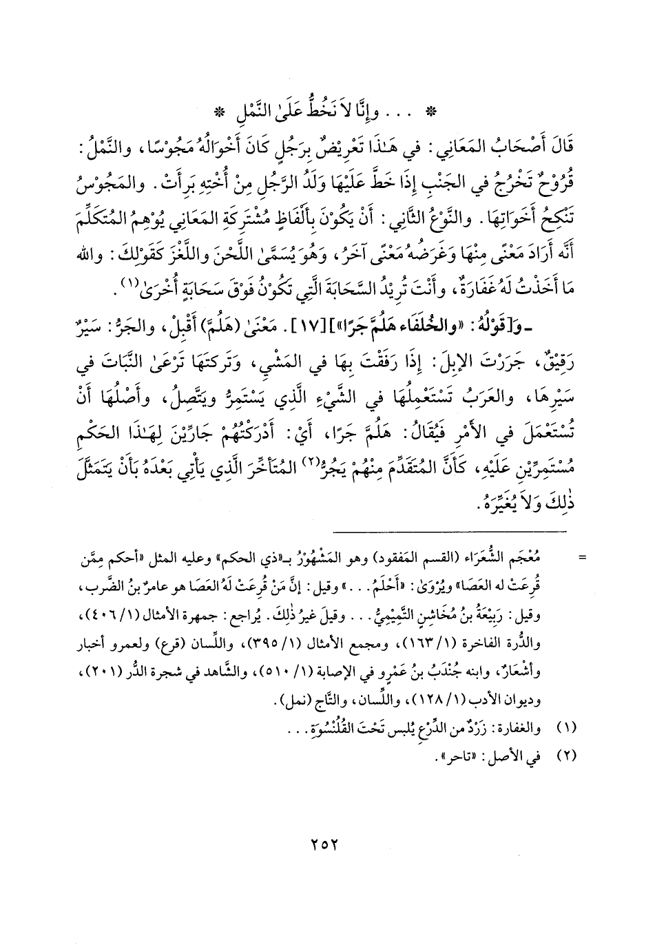 * ... وإِنَّا لَا نَخُطُّ عَلَى النَّمْلِ *