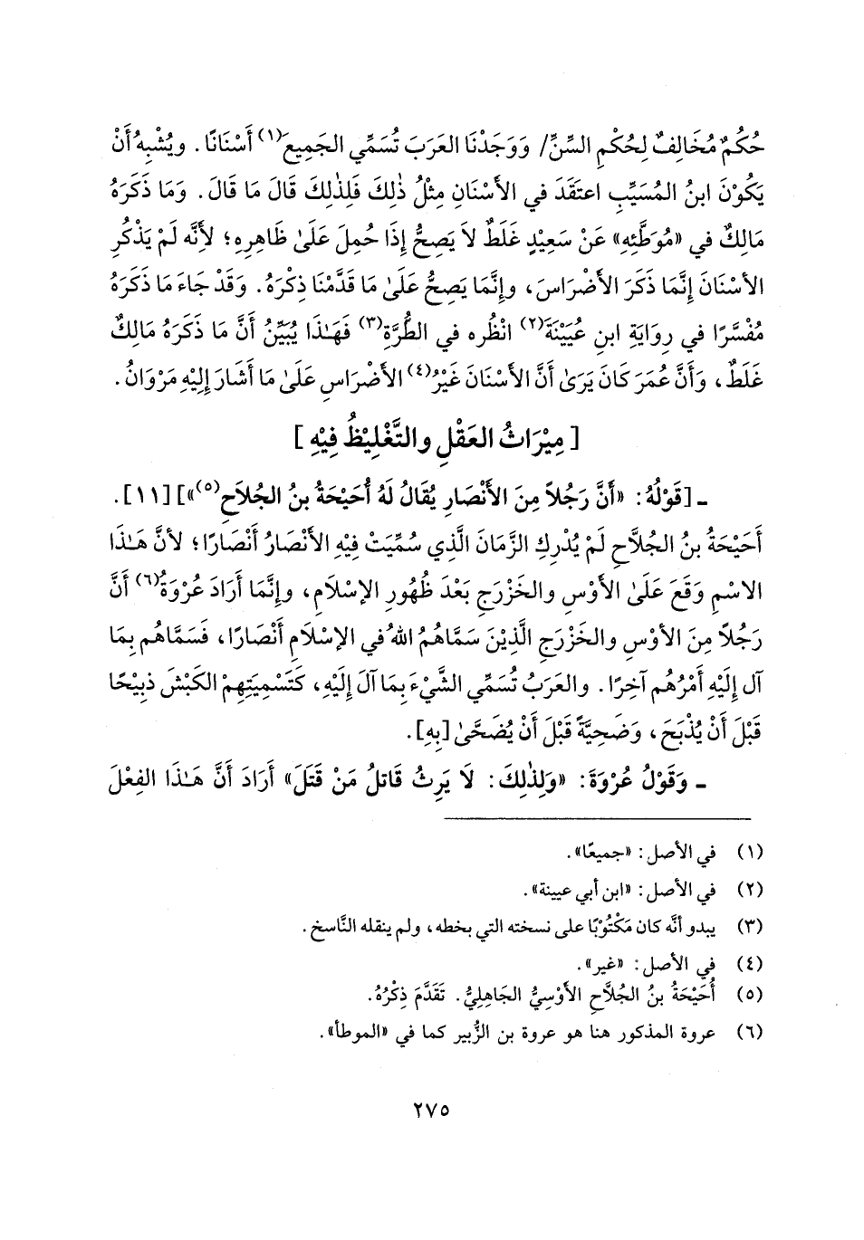 -[قَوْلُهُ: "أَنَّ رَجُلًا مِنَ الأَنْصَارِ يُقَالُ لَهُ أحَيحَةُ بنُ الجُلَاحِ (¬5) "] [11]. أَحَيحَةُ بنُ الجُلَّاحِ لَمْ يُدْرِكِ الزَّمَانَ الَّذِي سُمِّيَتْ فِيهِ الأنْصَارُ أَنْصَارًا؛ لأنَّ هَذَا الاسْمِ وَقَعَ عَلَى الأَوْسِ والخَزْرَجِ بَعْدَ ظُهُورِ الإسْلَامِ، وإِنَّمَا أَرَادَ عُرْوَةُ (¬6) أَنَّ رَجُلًا مِنَ الأوْسِ والخَزْرَجِ الَّذِينَ سَمَّاهُمُ اللهُ في الإسْلَامِ أَنْصَارًا، فَسَمَّاهُم بِمَا آل إِلَيهِ أَمْرُهُم آخِرًا. والعَرَبُ تُسَمِّي الشَّيءَ بِمَا آلَ إِلَيهِ، كَتَسْمِيَتِهِمْ الكَبْشَ ذبِيحًا قَبْلَ أَنْ يُذْبَحَ، وَضَحِيَّهً قَبْلَ أَنْ يُضَحَّى [بِهِ].