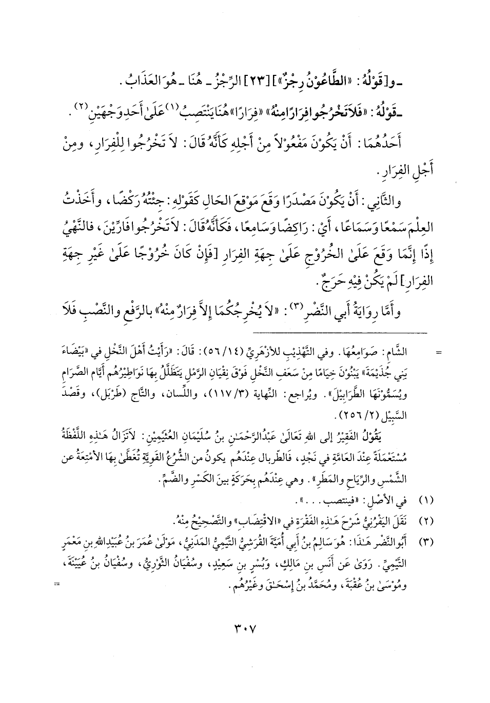 - قَوْلُهُ: "فَلَا تَخرُجُوا فِرَارًا مِنْهُ" "فِرَارًا" هُنَا يَنْتَصِبُ (¬1) عَلَى أَحَدِ وَجْهَينِ (¬2).