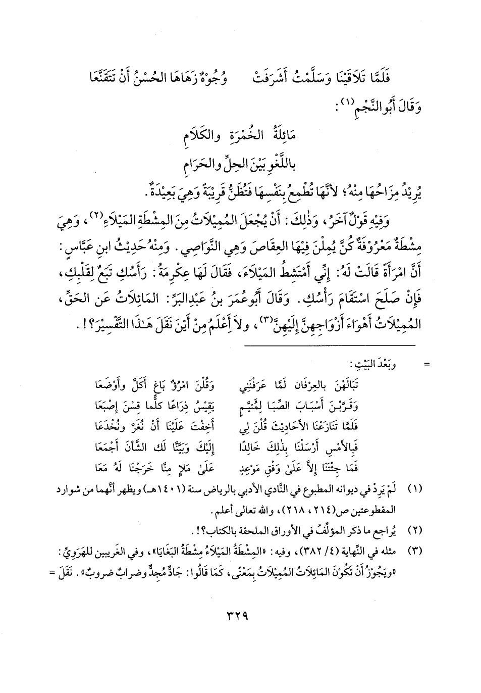 (¬1) لَمْ يَرِدْ في ديوانه المطبوع في النَّادي الأدبي بالرياض سنة (1401 هـ) ويظهر أنَّهما من شوارد المقطوعتين ص (214، 218)، والله تعالى أعلم.