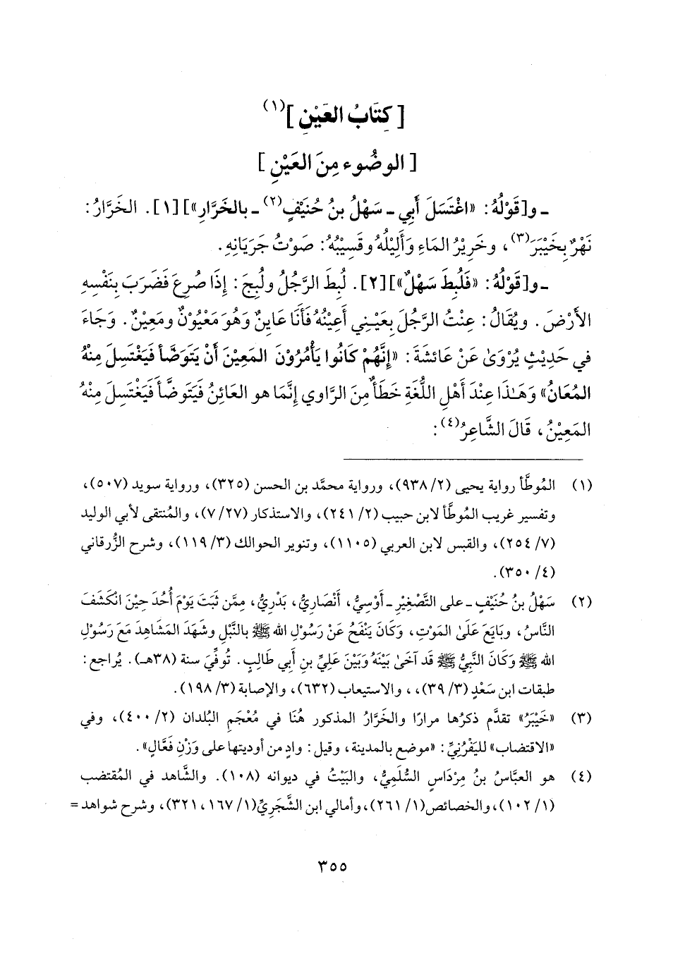 - و [قَوْلُهُ: "فَلُبِطَ سَهْلٌ"] [2]. لُبِطَ الرَّجُلُ ولُبِجَ: إِذَا صُرِعَ فَضَرَبَ بِنَفْسِهِ الأرْضَ. ويُقَالُ: عِنْتُ الرَّجُلَ بِعَينِي أَعِينُهُ فَأَنَا عَايِنٌ وَهُوَ مَعْيُوْنٌ ومَعِينٌ. وَجَاءَ في حَدِيثٍ يُرْوَى عَنْ عَائشَةَ: "إِنَّهُمْ كَانُوا يَأمُرُوْنَ المَعِينَ أنْ يَتَوَضَّأ فَيَغْتَسِلَ مِنْهُ المُعَانُ" وَهَذَا عِنْدَ أَهْلِ اللُّغَةِ خَطَأٌ مِنَ الرَّاوي إِنَّمَا هو العَائِنُ فَيَتَوضَّأَ فَيَغْتَسِلَ مِنْهُ المَعِينُ، قَال الشَّاعِرُ (¬4):